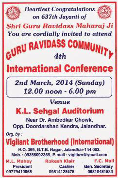 GURU RAVIDASS COMMUNITY – 4th International Conference