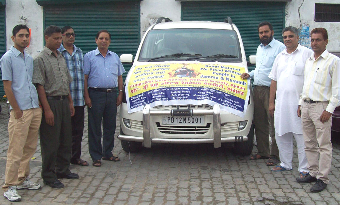 ਸ਼੍ਰੀ ਗੁਰੂ ਰਵਿਦਾਸ ਵੈਲਫੇਅਰ ਸੋਸਾਇਟੀ ਵਲੋਂ ਜੰਮੂ ਕਸ਼ਮੀਰ ਵਿੱਚ ਹੜ੍ਹਾਂ ਤੋਂ ਪ੍ਰਭਾਵਿਤ ਲੋਕਾਂ ਲਈ ਲਿਜਾਈ ਜਾ ਰਹੀ ਰਾਹਤ ਸਮੱਗਰੀ ਦੀ ਗੱਡੀ ਰਵਾਨਾ ਕੀਤੀ।