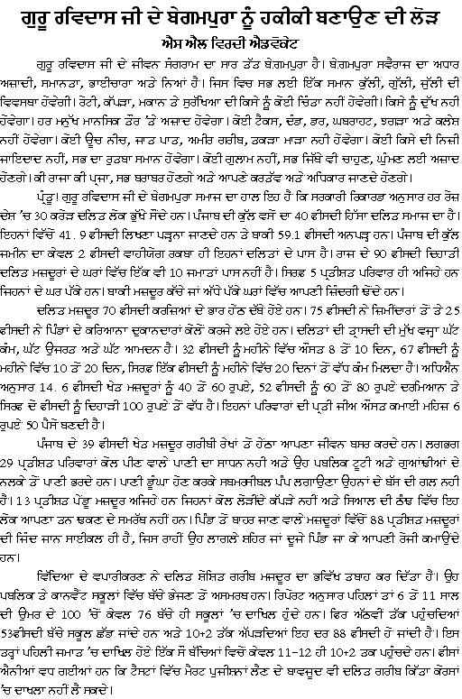 ਗੁਰੂ ਰਵਿਦਾਸ ਜੀ ਦੇ ਬੇਗ਼ਮਪੁਰੇ ਨੂੰ ਹਕੀਕੀ ਬਨਾਉਣ ਦੀ ਲੋੜ