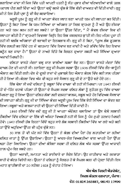 ਸ਼੍ਰੀ ਗੁਰੂ ਰਵਿਦਾਸ ਵੈਲਫੇਅਰ ਸੋਸਾਇਟੀ ਅਤੇ ਅਦਾਰਾ www.upkaar.com ਵਲੋਂ ਵਿਰਦੀ ਜੀ ਦਾ ਧੰਨਵਾਦ ਹੈ