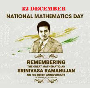 22 ਦਸੰਬਰ ਨੂੰ ਰਾਸ਼ਟਰੀ ਗਣਿਤ ਦਿਵਸ ਮਨਾਇਆ ਜਾਂਦਾ ਹੈ। ਭਾਰਤ ਵਿੱਚ ਬਹੁਤ